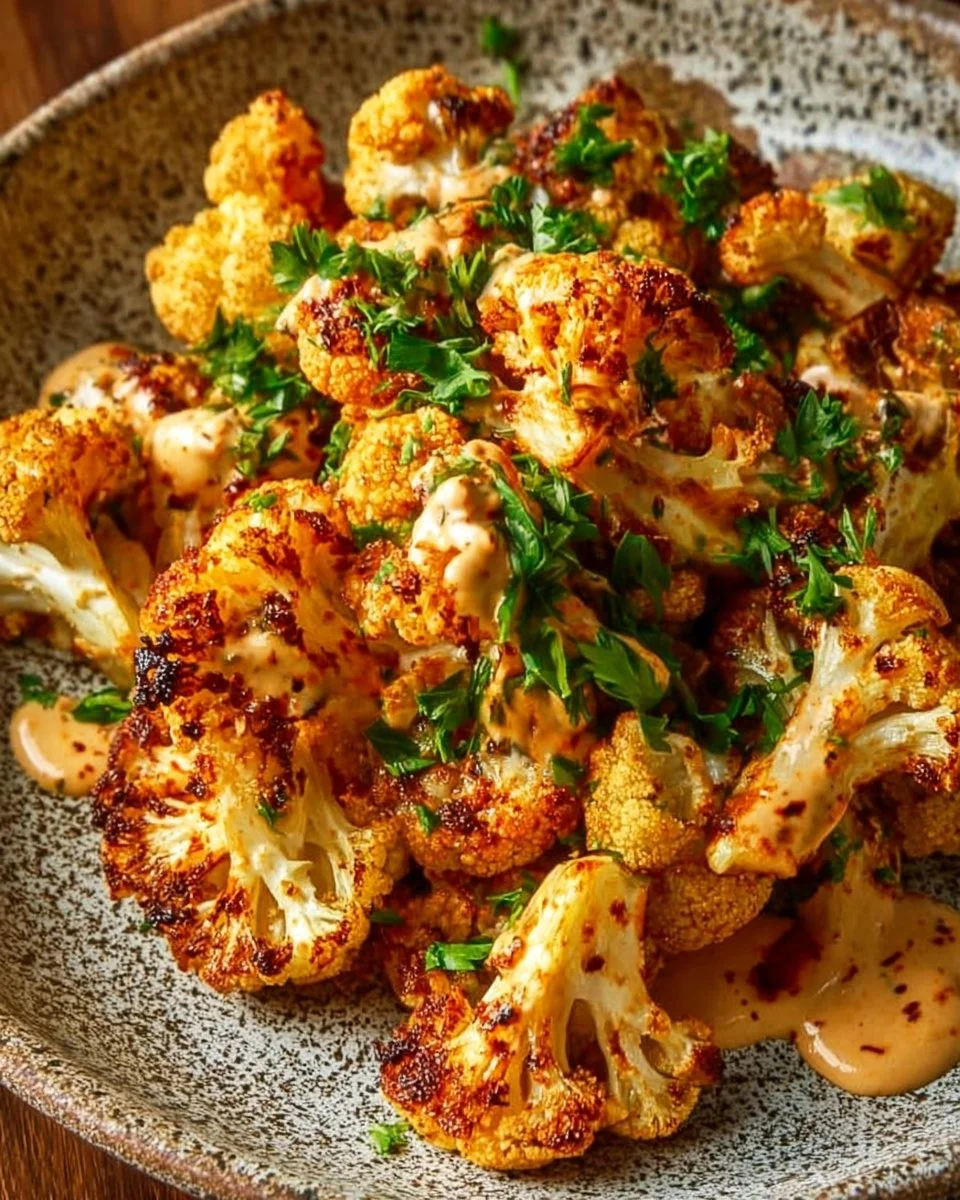 - Drizzle the tahini-honey sauce over the roasted cauliflower and garnish with fresh parsley. Serve warm.
