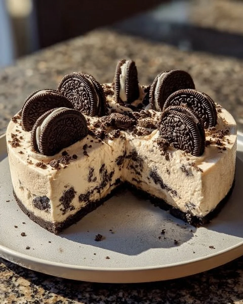 Slice the cheesecake into wedges and serve cold. You can add whipped cream and sprinkle more crushed Oreos on top for extra decoration. Each bite will be creamy, crunchy, and absolutely delightful!