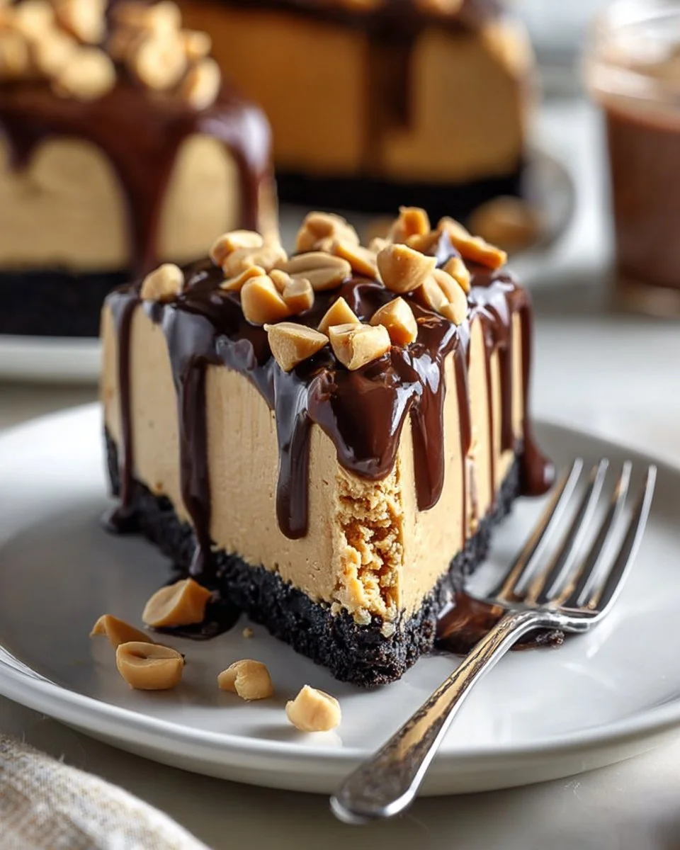 A delightful dessert that combines creamy peanut butter with rich chocolate ganache, perfect for peanut butter lovers and easy to make without baking.