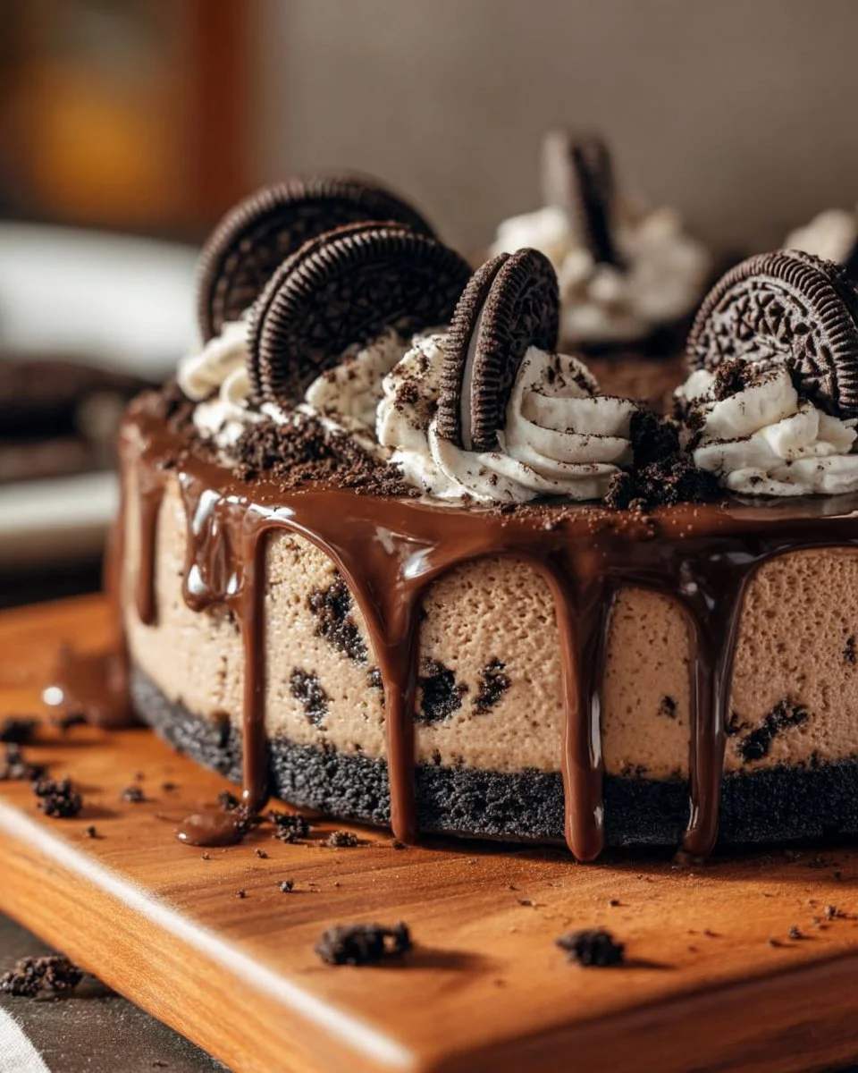 Keywords: cheesecake, dessert, Oreo, baking, chocolate ganache