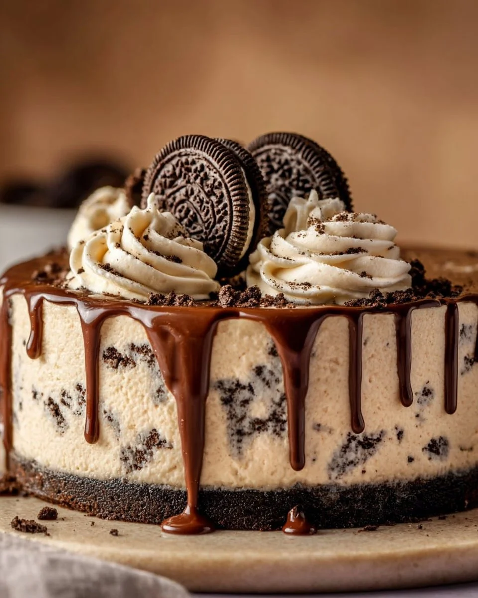 Delicious Oreo cheesecake combining creamy cheesecake and crunchy Oreo cookies, perfect for any occasion.
