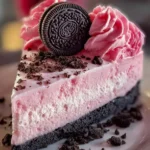 A delightful no-bake cheesecake combining rich cream cheese and strawberry flavors with a crunchy Oreo crust.