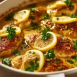 - Finish: Garnish with fresh parsley and lemon slices. Spoon the sauce over the chicken before serving.