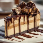This indulgent cheesecake features creamy peanut butter and Reese’s Peanut Butter Cups, perfect for dessert lovers.