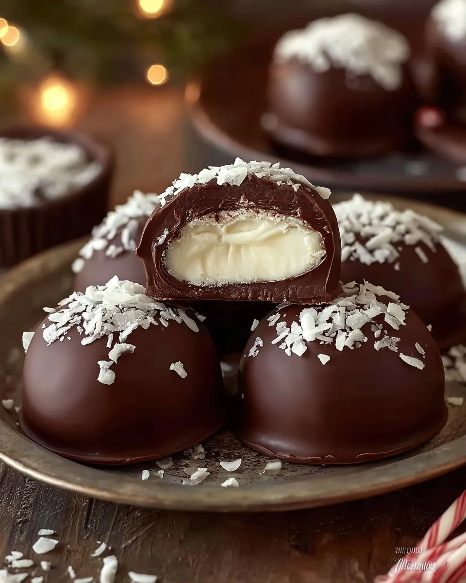 Delightful homemade peppermint patties featuring a refreshing mint interior coated in rich chocolate.