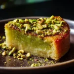 When serving, cut the cake into squares or wedges. You can place a scoop of vanilla ice cream or a dollop of whipped cream on top for extra creaminess. This cake can also be enjoyed on its own, highlighting its rich pistachio flavor.
