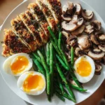 The Protein Power Plate is a delicious and nutritious meal. This dish features herbed chicken, boiled eggs, and fresh green beans, making it a great choice for anyone looking to boost their protein intake. It’s easy to make and perfect for lunch or dinner!