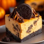 A delightful Pumpkin OREO Cheesecake that combines creamy cheesecake with warm pumpkin spices and the sweet crunch of OREO cookies, perfect for fall gatherings.