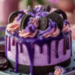 Are you ready to dive into a delicious world of flavors and colors? The Purple Velvet Oreo Cheesecake is a stunning dessert that combines the rich taste of cheesecake with the delightful crunch of Oreos. Topped with a beautiful white chocolate ganache and playful decorations, this cheesecake is sure to impress any guest or satisfy your sweet tooth!