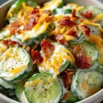 A light and refreshing snack made with crunchy cucumbers, shredded cheese, and beef bits, perfect for any time of the day.