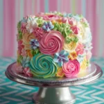 Making the Rainbow Buttercream Flower Cake is a fun and rewarding experience. First, it allows you to unleash your creativity as you decorate with different colors and shapes. Second, this cake is a crowd-pleaser, especially for kids and anyone who loves sweets. It’s a great way to practice your baking skills and impress your friends and family with a beautiful homemade cake!