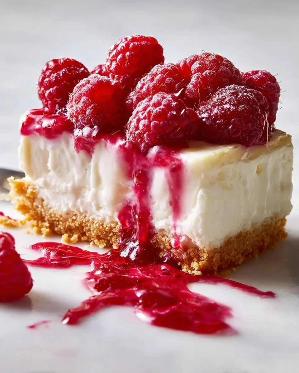 A delightful dessert combining creamy cheesecake with the tartness of fresh raspberries, perfect for gatherings and special occasions.
