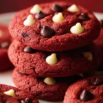 Delightful red velvet cookies with rich cocoa and sweet white chocolate chips, perfect for any occasion.