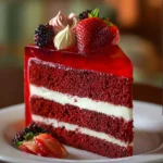 A delightful dessert that combines rich red velvet cake with a creamy cheesecake layer and a refreshing strawberry glaze, perfect for special occasions.