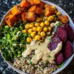 The Roasted Beet and Sweet Potato Buddha Bowl is a colorful and nutritious dish that brings together the earthy flavors of beets and the natural sweetness of sweet potatoes. This bowl is not just visually appealing, but also packed with vitamins and minerals. It’s perfect for lunch or dinner and can be enjoyed warm or cold.