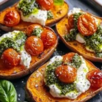 Roasted Sweet Potato Rounds with Burrata Pesto and Cherry Tomatoes are a delightful dish that combines the natural sweetness of sweet potatoes with the creamy richness of burrata cheese. Topped with vibrant cherry tomatoes, this recipe is both eye-catching and packed with flavor. It’s perfect for sharing as an appetizer or enjoying as a side dish.