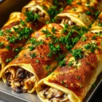Delicious crepes filled with tender chicken and flavorful mushrooms, perfect for dinner or brunch.