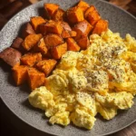 Scrambled Eggs & Roasted Sweet Potatoes is a delightful and nutritious breakfast option. This dish combines soft, fluffy scrambled eggs with sweet, roasted sweet potatoes. It’s simple to make and full of flavors that will start your day right!