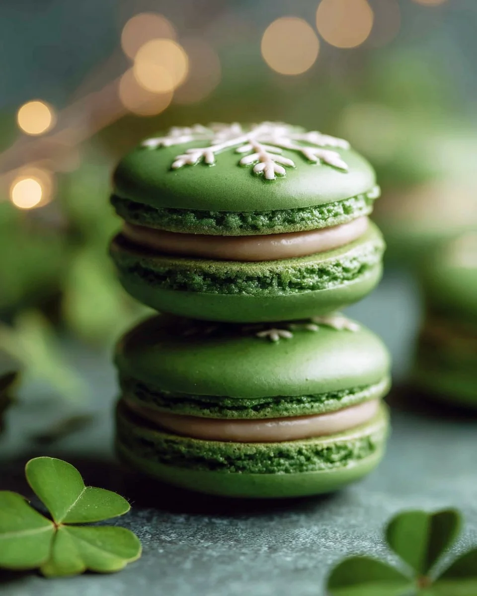 Delightful macarons with a rich Baileys ganache, perfect for St. Patrick’s Day or any celebration.