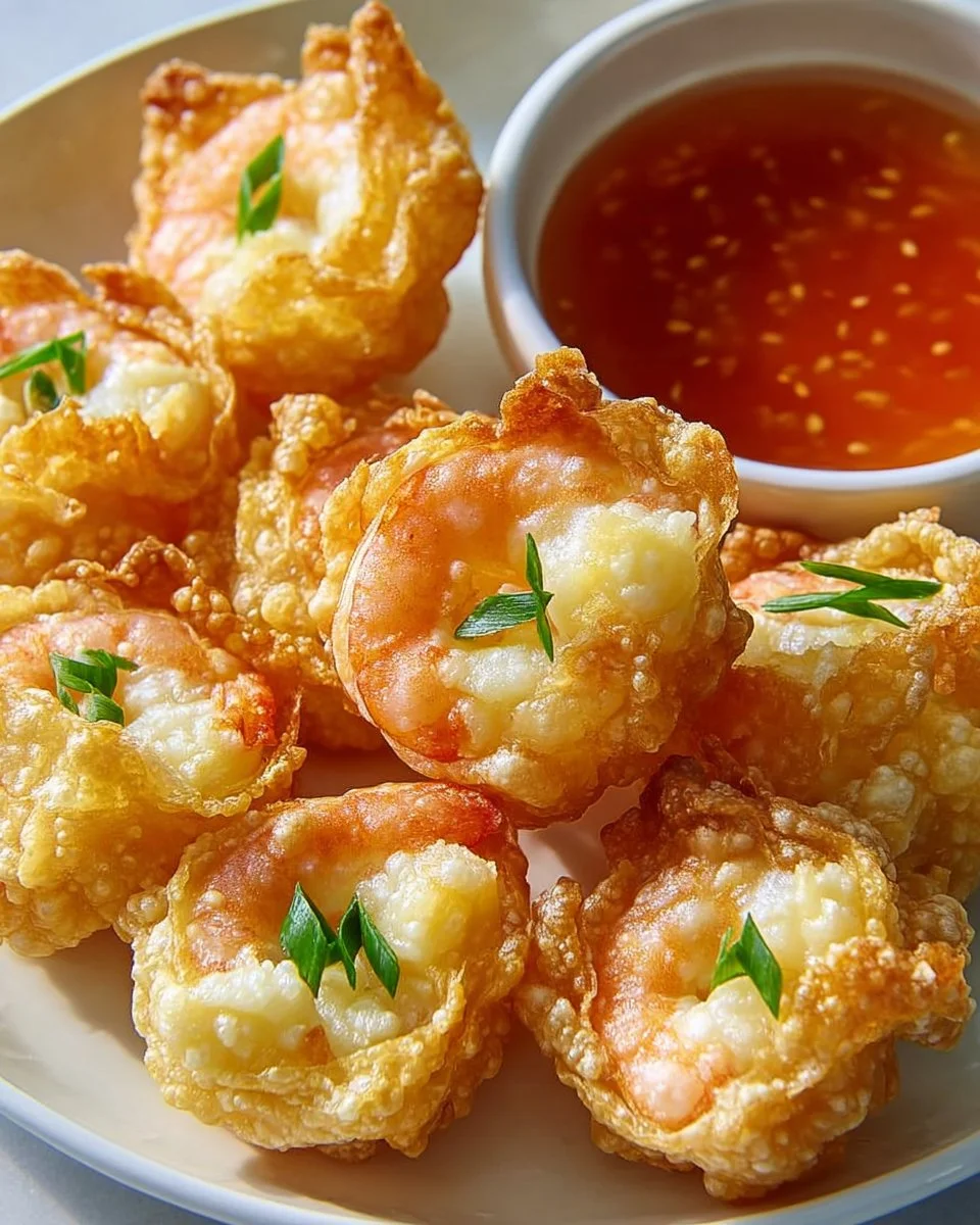 Delightful Shrimp & Cream Cheese Wontons combine the flavors of the sea and creamy goodness in crispy bites, perfect for any occasion.