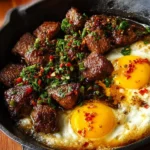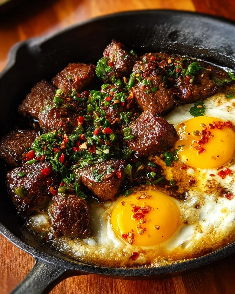 Sizzling Steak & Eggs Skillet is best served right from the skillet. You can accompany it with crusty bread, toast, or a fresh salad for added crunch. This dish is perfect for sharing, so don’t forget to grab a fork and dig in together!