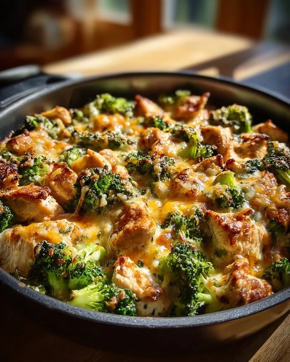 A delicious and healthy casserole combining tender chicken and fresh broccoli in a creamy sauce, lighter than traditional casseroles.