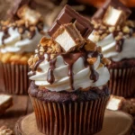 Delightful cupcakes that replicate the classic campfire s’mores with chocolate, marshmallow frosting, and crunchy graham crackers.