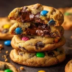 Chewy, rich cookies packed with peanut butter, colorful M&M candies, chocolate chips, and crunchy peanuts.