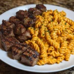 Spicy Garlic Butter Steak with Cheddar Cream Rotini is a delicious meal that combines tender steak pieces with creamy cheddar sauce and pasta. It’s a perfect dish for a cozy dinner or when you want to impress your family and friends with something special. The blend of spices adds a kick to the buttery garlic flavor, making it irresistible.