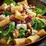 Spinach Pasta Salad with Feta and Cranberries is a delicious and healthy dish that combines vibrant flavors and textures. This salad is perfect for lunch, dinner, or a side at gatherings. With chewy pasta, fresh spinach, sweet cranberries, creamy feta, and crunchy nuts, every bite is a wonderful experience.
