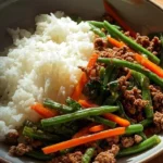 This recipe is a great choice for anyone looking for a quick and filling meal. It uses simple ingredients that you likely already have at home, and it can be prepared in under 30 minutes. The combination of ground beef, green beans, and carrots offers a wonderful texture, while the sticky sauce makes every bite enjoyable. Plus, you can control the heat level, making it suitable for everyone in the family.