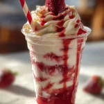 - Top with a generous amount of whipped cream, drizzle strawberry syrup over it, and garnish with fresh strawberry slices.