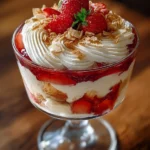 The Strawberry Cheesecake Trifle is a delicious and beautiful dessert that combines layers of creamy cheesecake, fresh strawberries, and soft cake. It’s a perfect treat for any occasion, from family gatherings to special celebrations. This simple recipe brings together all the flavors of strawberry cheesecake in a fun and easy-to-serve way.