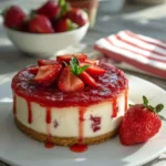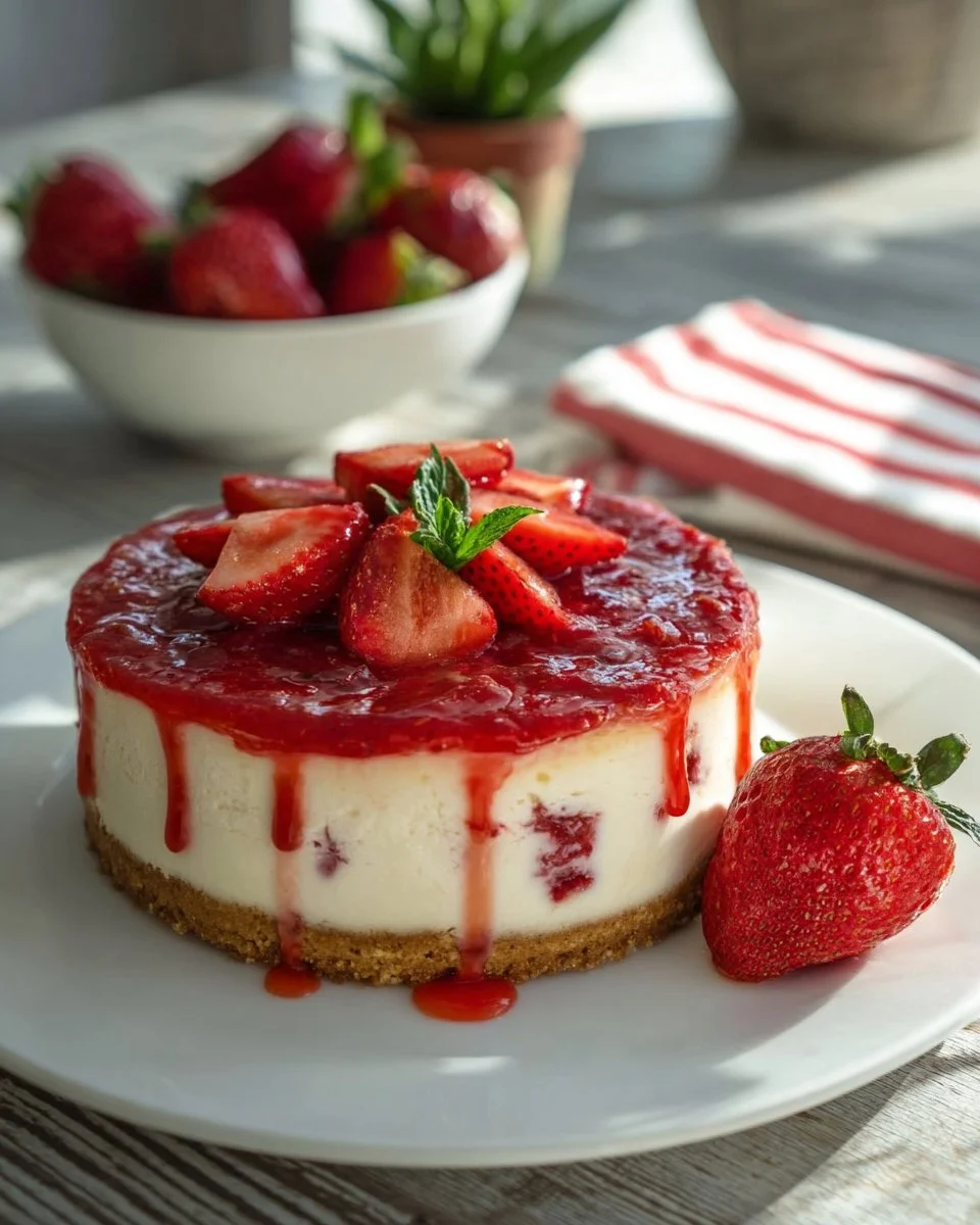 A delightful dessert that combines the rich creaminess of cheesecake with fresh strawberries for a visually stunning treat.