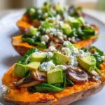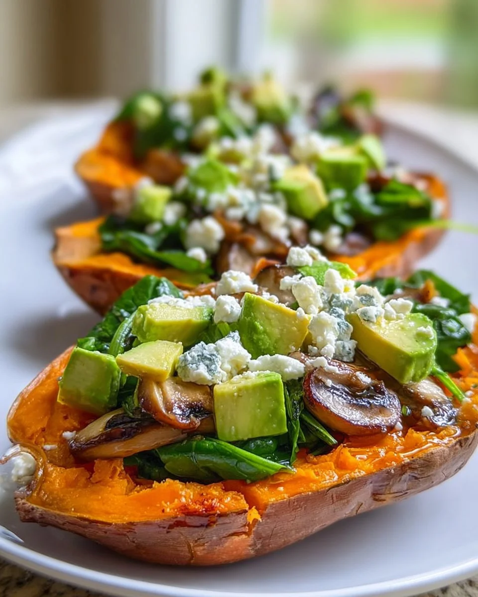 Delicious and healthy stuffed sweet potatoes packed with nutrients and flavor, topped with sautéed veggies and creamy avocado.