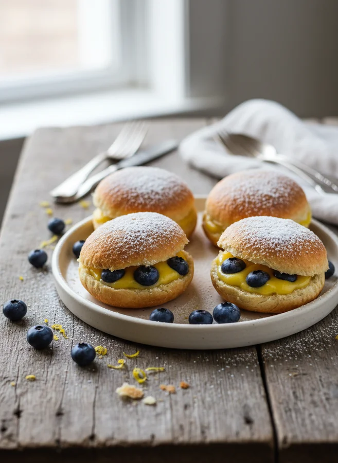 Cook blueberries, sugar, lemon zest, lemon juice, and cornstarch in a saucepan for 5-7 minutes until thickened. Let cool.