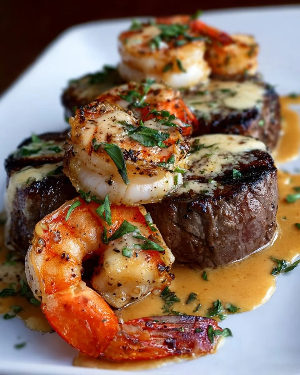 Surf and Turf with Creamy Garlic Sauce is a delicious combination of tender beef and fresh shrimp, all topped with a rich and creamy garlic sauce. This dish brings together the best of both land and sea, making it perfect for special occasions or a cozy dinner at home.