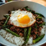 Thai-Inspired Ground Beef with Rice & Fried Egg is a delicious dish that combines flavors and textures in a simple meal. This recipe brings together seasoned ground beef, fresh green beans, and fluffy jasmine rice, topped with a fried egg. Not only is it tasty, but it is also quick to prepare, making it a great choice for busy weeknights.