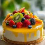 - Top with Fresh Fruit: Arrange the fresh fruits on top of the cheesecake. Garnish with mint leaves and a light dusting of powdered sugar for a beautiful, elegant finish.