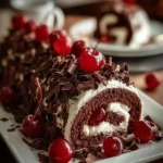 Keywords: Black Forest, roll cake, chocolate dessert, cherry dessert, baking recipe