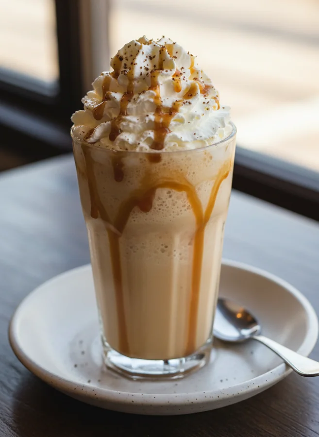 5. Serve: Pour the frappuccino into a tall glass. If desired, top with whipped cream and an additional sprinkle of vanilla bean seeds or a drizzle of caramel sauce for an extra special touch.