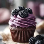 A delicious and creamy vegan frosting made with blackberries and cashews, perfect for topping cupcakes, muffins, or cakes.