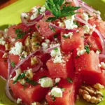A light and refreshing salad featuring sweet watermelon, tangy feta, and crunchy walnuts, perfect for summer gatherings.