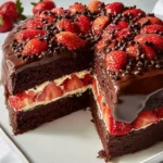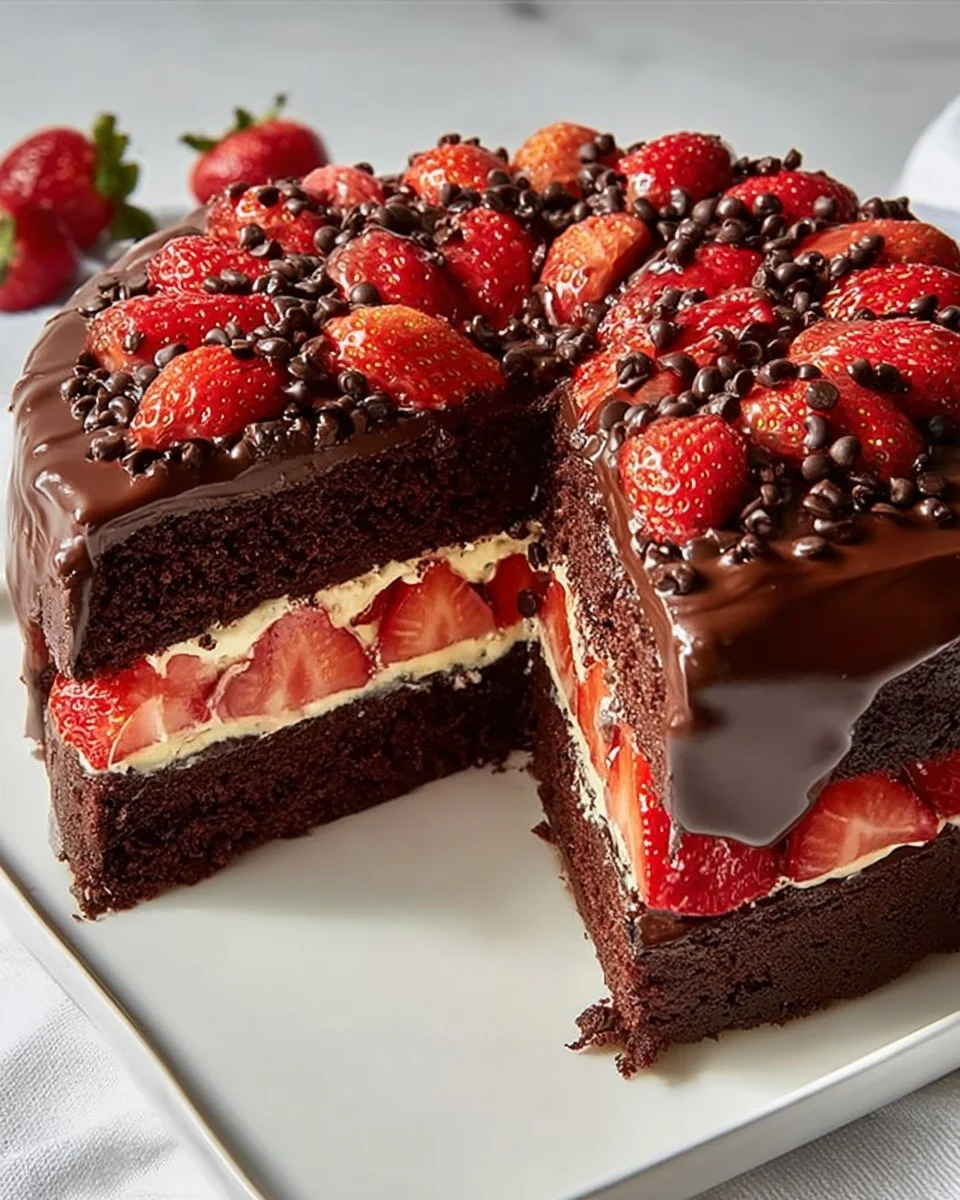 A delightful dessert combining rich chocolate flavor with fresh strawberries, perfect for any occasion.