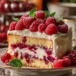 - Chill and Serve: Refrigerate the assembled cake for at least 30 minutes. Garnish with fresh raspberries and chocolate shavings, slice, and enjoy!